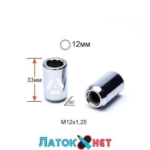 Гайка колесная A210344(2033) DST20B33 Cr M12X1,25X33 Хром Конус внутренний 10 лучевая звезда диаметр 20 мм