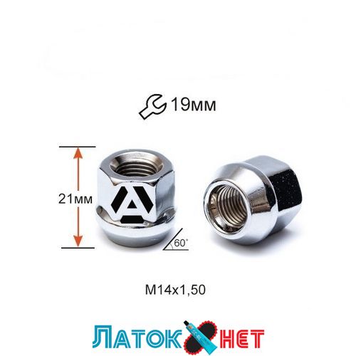 Гайка колесная A400148(11300) Cr D17 Cr M14X1,50 Хром высота 21 мм Конус с выступом открытая ключ 19 мм