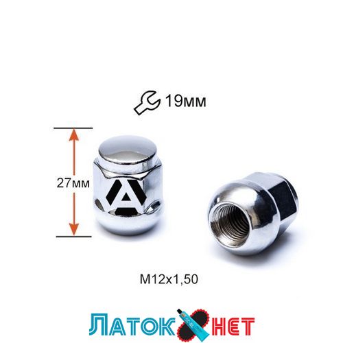 Гайка колесная A401145(13620) B Cr M12X1,50 Хром высота 27 мм Сфера с выступом закрытая ключ 19 мм