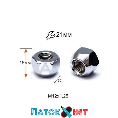 Гайка колесная A700044(11100) Cr M12X1,25 Хром высота 16 мм Конус открытая ключ 21 мм