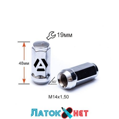 Гайка колесная A801948(13748) Cr M14Х1,50Х48 мм Конус Хром Ключ 19 мм