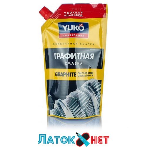 YUKO Смазка графитная производится из нефтяных масел средней вязкости, загущенных гидратированным кальциевым мылом жирных кислот растительных и животных жиров, с добавлением графита, выполняющего роль твердого смазочного материала.