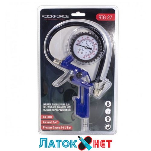 Пистолет для подкачки шин с аналоговым манометром и шлангом 0-12 Bar в блистере RF-STG-27 Rock Force