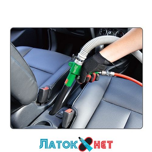 Пылесос - идеальный аксессуар для очистки гаражей и мастерских. Работает от компрессора, быстро изменяя воздух из компрессора на вакуум. В комплект входят: алюминиевый пистолет, гофрированый гибкий пластмассовый шланг, мешок для сбора пыли, круглая насадка, насадка щетка, плоская и крошечные насадки.