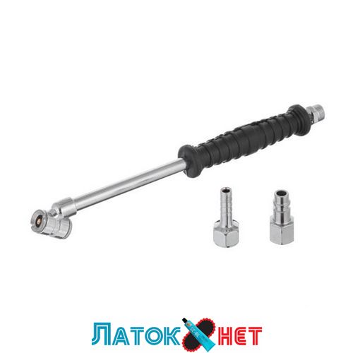 Удлинитель для накачки сдвоенных и обычных колес предназначен для того, чтобы облегчить процесс накачки сжатым воздухом автомобильных шин. Пригодится в любых случаях, особенно удобен для накачки шин грузовых авто, двойных (спаренных) шин со сложным доступом к вентилю, когда дотянуться до него обычным пистолетом для подкачки достаточно сложно. Данный удлинитель популярен в шиномонтаже, на СТО и в автосервисах, а также у автовладельцев, поскольку позволяет быстро и без усилий накачать шины.
