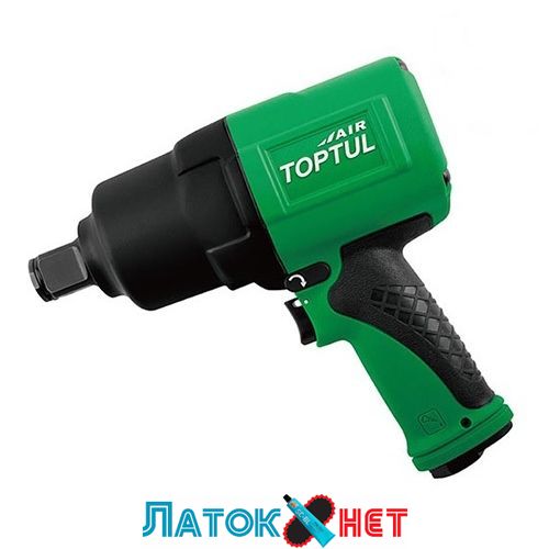 Пневмогайковерт TOPTUL KAAJ3214 (облегченный, укороченный) присоединительный квадрат 1", с максимальным создаваемым усилием 1898N/m, и скоростью вращения 6000об/мин, с возможностью переключения режима вращения (F/R) одной рукой и шумоглушителем.