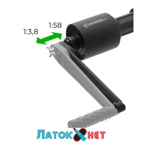 INTERTOOL XT-0006 – баллонный роторный ключ, предназначенный для работы с резьбовыми соединениями на грузовиках. Его максимальный крутящий момент составляет 3800 Нм. С двухскоростным роторным ключом можно без особых усилий открутить прикипевшую гайку, благодаря оптимальному подбору передаточного числа - 1:58 и 1:3,8, что существенно облегчает процесс откручивания. В режиме с высоким передаточным числом вы срываете прикипевшее резьбовое соединение, а потом, переключившись на второй режим и выдвинув рукоять, просто докручиваете его без использования рычагов.