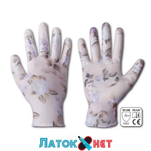 Нежно-розовый цвет и цветочный орнамент понравятся любой женщине, а высокие эксплуатационные характеристики позволят защитить нежные женские руки при работе в саду и огороде.
