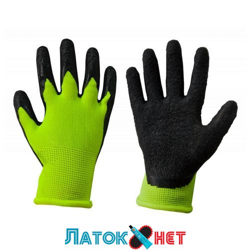 Перчатки выполнены из полиэстерового трикотажа - стежок 13 (1,8 мм) и имеют покрытие из вспененного латекса для защиты ладоней и пальчиков.