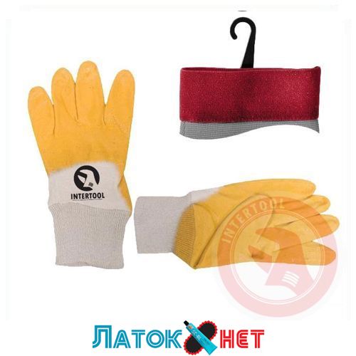 Перчатка хлопчатобумажная трикотаж покрытая нитрилом на ладони 24,5 см желтая SP-0109 Intertool