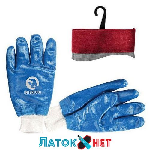 Перчатка маслостойкая хлопчатобумажная трикотаж с нитрилом c вязаным манжетом синяя SP-0137 Intertool
