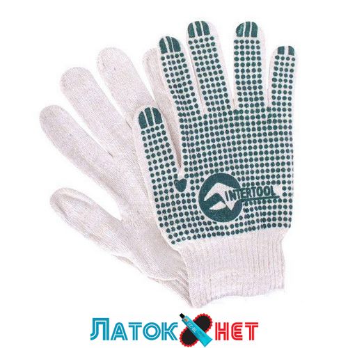 Перчатка хлопчатобумажная трикотажная с резиновым вкраплением с одной стороны ПВХ зеленая размер 9 SP-0133 Intertool
