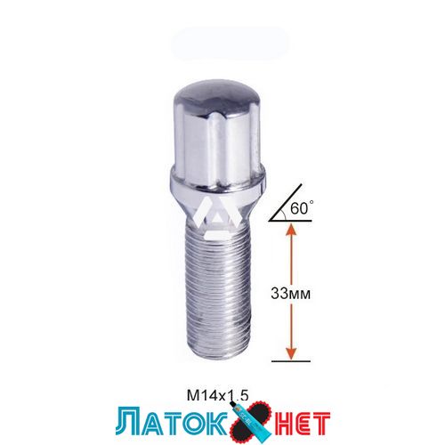 Болт колісний A174130SD (73033) M14X1,50X33 Хром 6 Spline Конус з виступом діаметр Cпецключа 20 мм