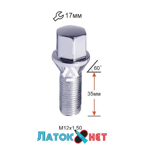Болт колісний A175137(93735) C17A35 Cr M12X1,50X35 Хром Конус з виступом ключ 17 мм