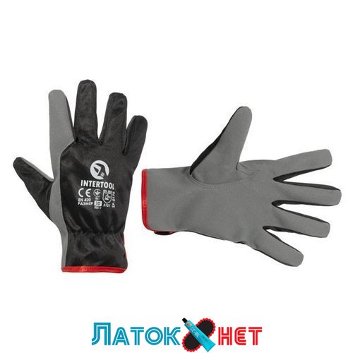 Захисні рукавиці INTERTOOL SP-0175 забезпечують надійний захист рук під час будівельних і побутових робіт. Поверхня долоні виготовлена з високоякісної екошкіри.