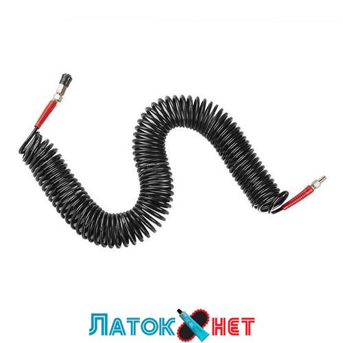 Шланги високого тиску повітряні спіральні призначені для під'єднання пневматичних інструментів. Використовуються для роботи з пневмообладнанням, розташованим на видаленні від фіксованого штуцера. Спіральні шланги високого тиску мають такі переваги: можливість істотно розтягуватися в довжину та легко повертати первісну форму. Наявність швидкорознімних з'єднань забезпечує можливість під'єднання спіральних шлангів до інших шлангів. Під час роботи пневматичного обладнання шланги спіральні не плутаються під ногами. Це підвищує зручність і безпеку робочого процесу. Спіральні шланги високого тиску можуть бути виготовлені з 2 різних матеріалів: ПВХ і поліуретану. Поліуретанові шланги високого тиску м'якші, вони краще пристосовані до перепадів температур і довговічніші. Наша доставка найпопулярніших, популярних, недорогих шлангів повітряних спіральних по Україні займе один — два дні.