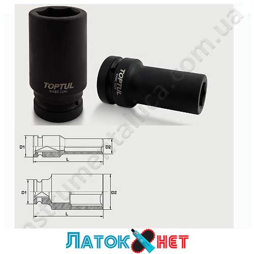Головка торцева 1 27 мм ударна довга 6-гранна KABE3227 Toptul