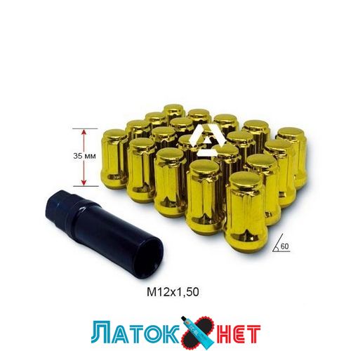 Гайка колісна A211445SD GD M12х1,5х35 мм Конус Золотий Хром 20 гайок + 1 спец.ключений у комплекті