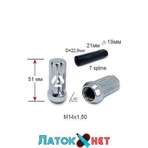 Гайка колісна A911448SD M14х1,5х51мм Конус Хром
