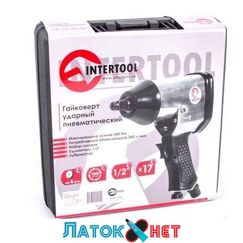 Гайковерт пневматичний 1/2 345Нм 7000об/хв PT-1101 Intertool у валізі + набір головок 17ед