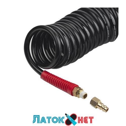 Шланг BLACK M-Flex 8х12 мм 20 м спіральний поліуретановий зі швидкорознімними з'єднаннями STORM PT-1798 Intertool