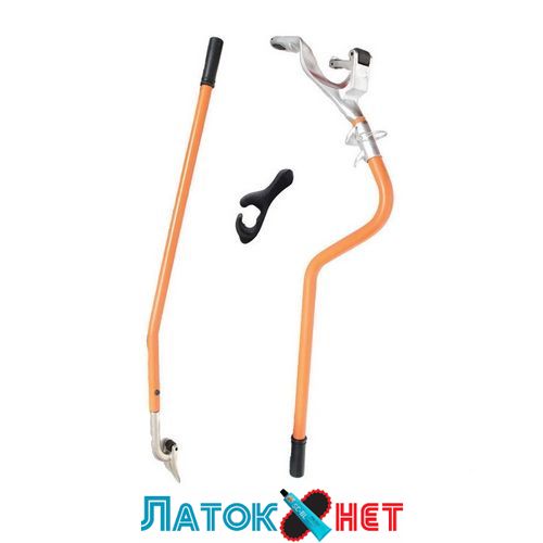 Комплект призначений для монтажу та демонтажу широкопрофільних вантажних і тракторних шин стандартних конструкцій і типорозмірів. Монтажний затискач використовується для утримання борту у виїмці обода.