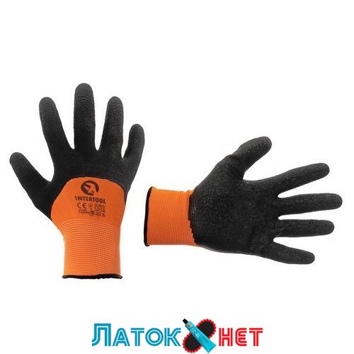 Захисні рукавиці INTERTOOL SP-0117 з латексним покриттям, призначені для захисту рук в умовах середньої тяжкості. Основа рукавичок виготовлена з поліестеру. Така пряжа із синтетичних волокон забезпечує зносостійкість, комфорт і гігієнічність. Еластичний манжет захищає від потрапляння всередину рукавички дрібних частинок і пилу.