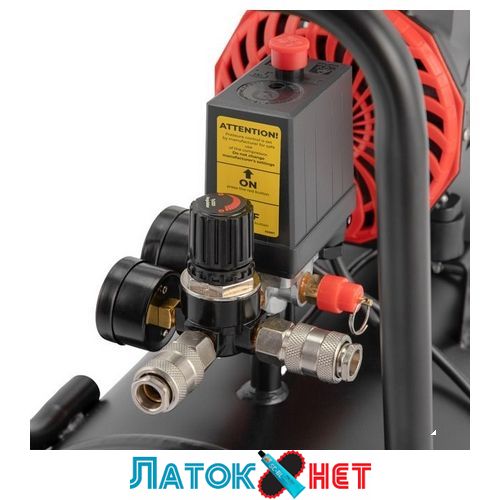 Для регулювання тиску в ресивері та на виході встановлені два манометри з редуктором, що дає змогу регулювати та постійно підтримувати вихідний тиск, необхідний вашому інструменту або обладнанню.