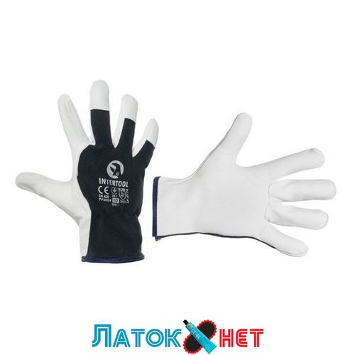 Захисні рукавиці INTERTOOL SP-0174 забезпечують надійний захист рук під час будівельних і побутових робіт, виготовлені з високоякісної натуральної овечої шкіри. Зворотний бік долоні виготовлений із трикотажної тканини, що дає змогу рукам "дихати" під час роботи.