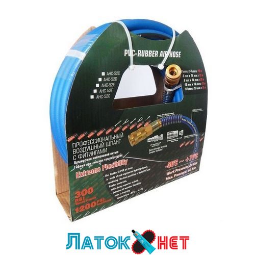Шланг повітряний гумовий армований із фітингами 8 х 14 мм х 15 м RF-AHC-52D Rock Force