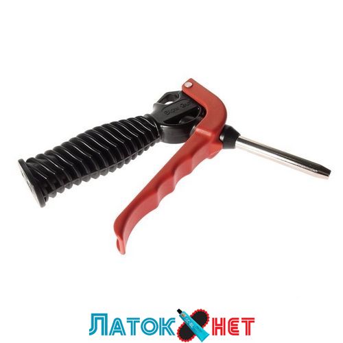 - З ергономічною витискною ручкою для економії зусилля та металевим перехідником у місці під'єднання повітряного штуцера.