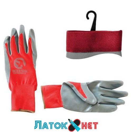 Рукавичка червона в'язана синтетична покрита сірим нітрилом на долоні 25 см SP-0124 Intertool