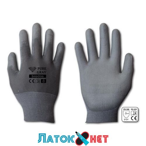 Рукавички захисні Pure Gray поліуретан розмір 9 блістер RWPGY9 Bradas